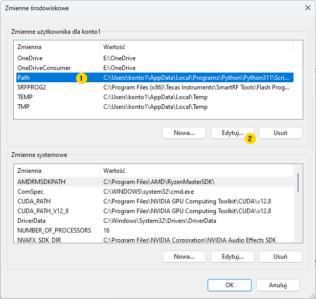 W kolejnym oknie o nazwie „Zmienne środowiskowe”: